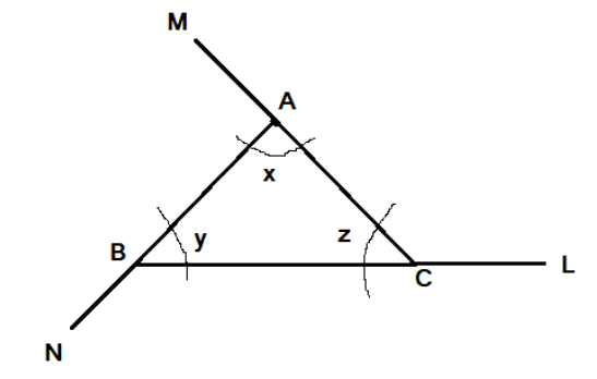 প্রাপ্ত বহি:স্থ কোণগুলো যথাক্রমে (180° - x), (180° - y), (180° - z)